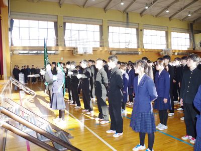 | 始業式の後は、冬のインターハイ壮行式です。 | |