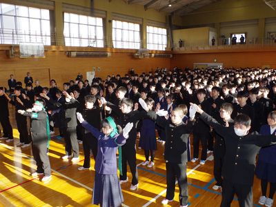 | 応援団のエールで壮行式を閉じました。頑張ってきてください。 | |